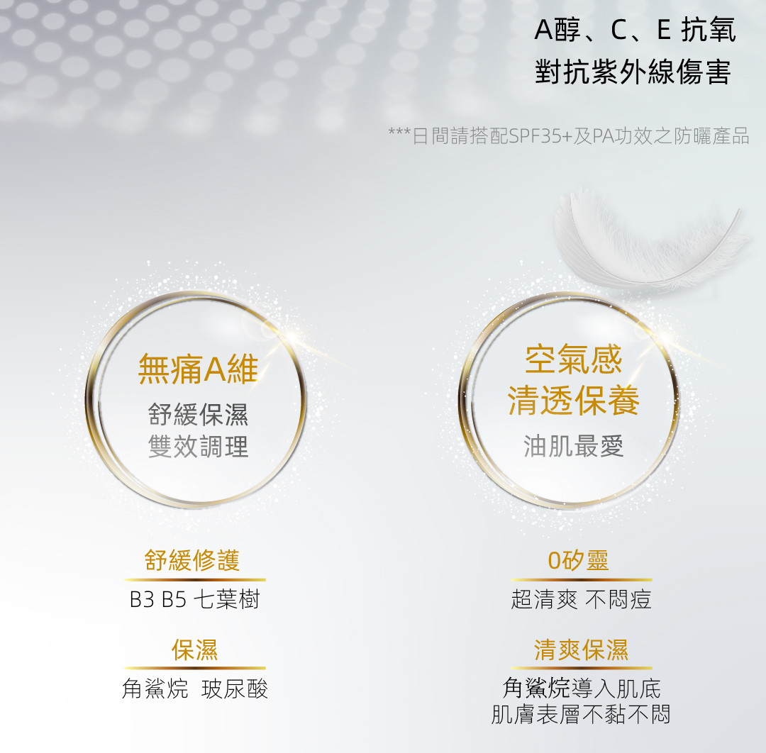 -由於A醇與A酯會在體內轉化為A酸,孕婦及哺乳期婦女請勿使用本產品